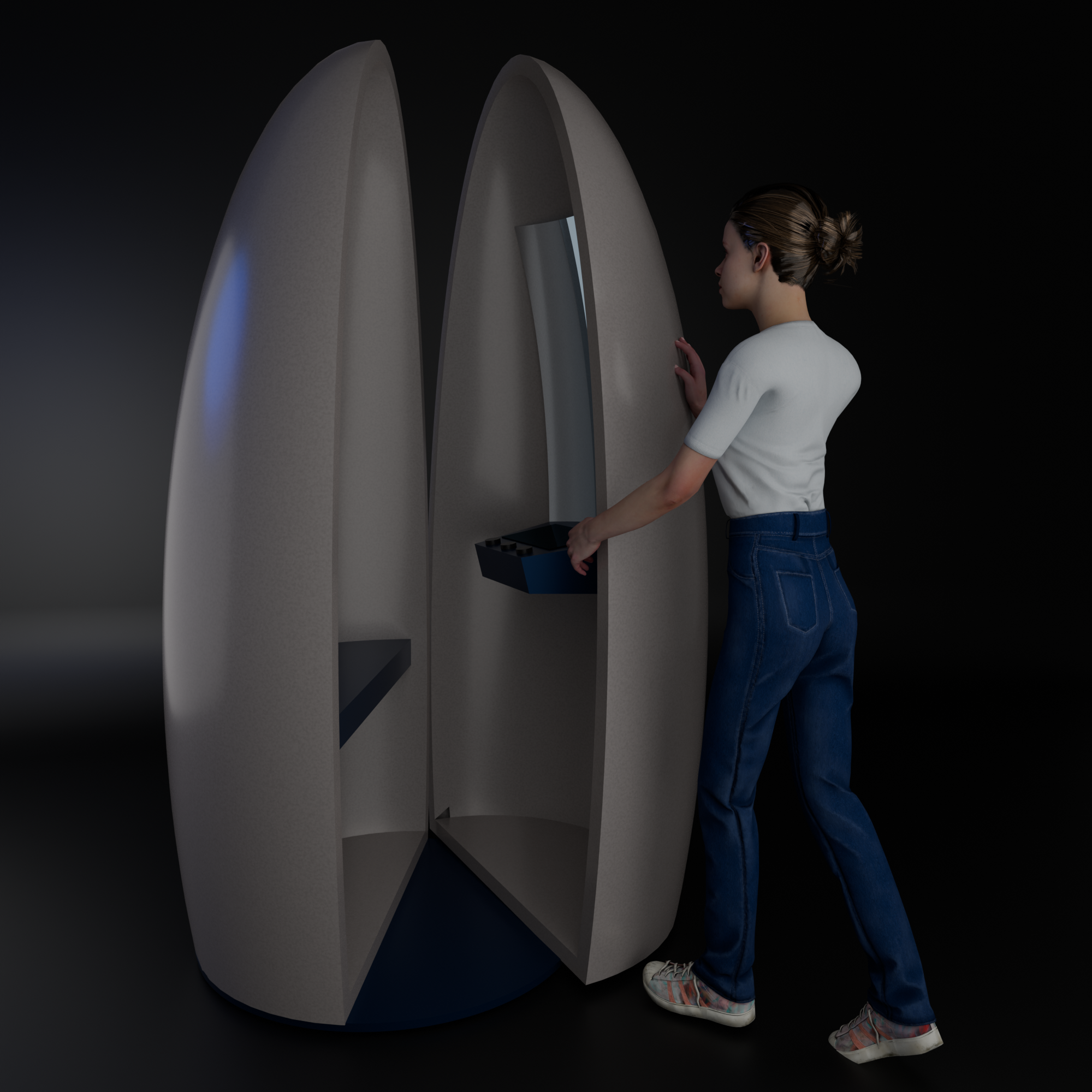 À partir d’une enquête menée dans les espaces médicaux, souvent perçus comme anxiogènes et silencieux, j’ai imaginé un module sensoriel apaisant, pensé pour transformer le temps d’attente en une parenthèse de calme et de lien.